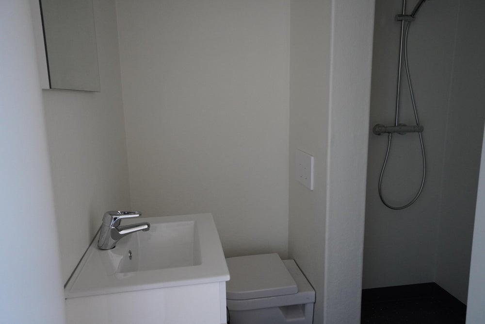 • Badkamer met inloopdouche, wastafel en zwevend toilet