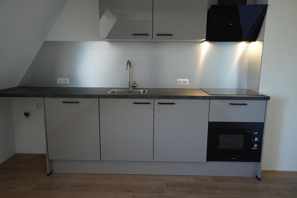 Het appartement beschikt over een woonkamer met open keuken, een aparte slaapkamer en een badkamer met douche en wastafel, evenals een apart toilet.