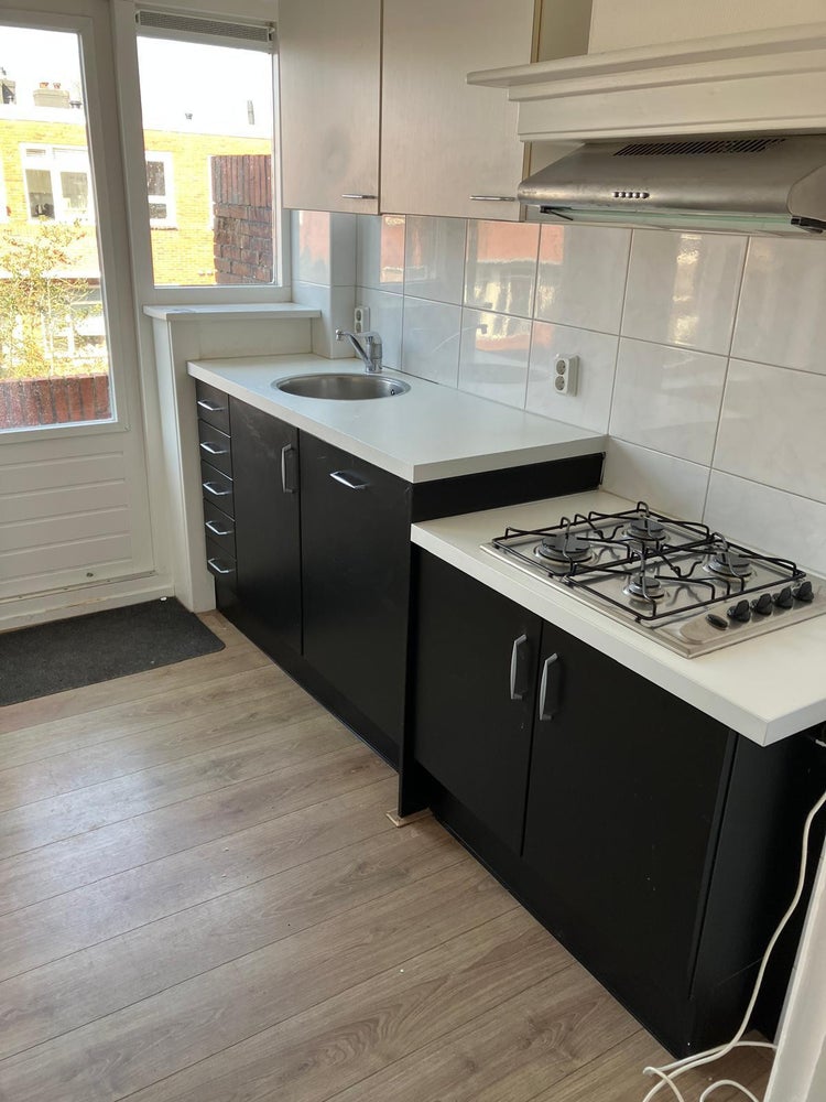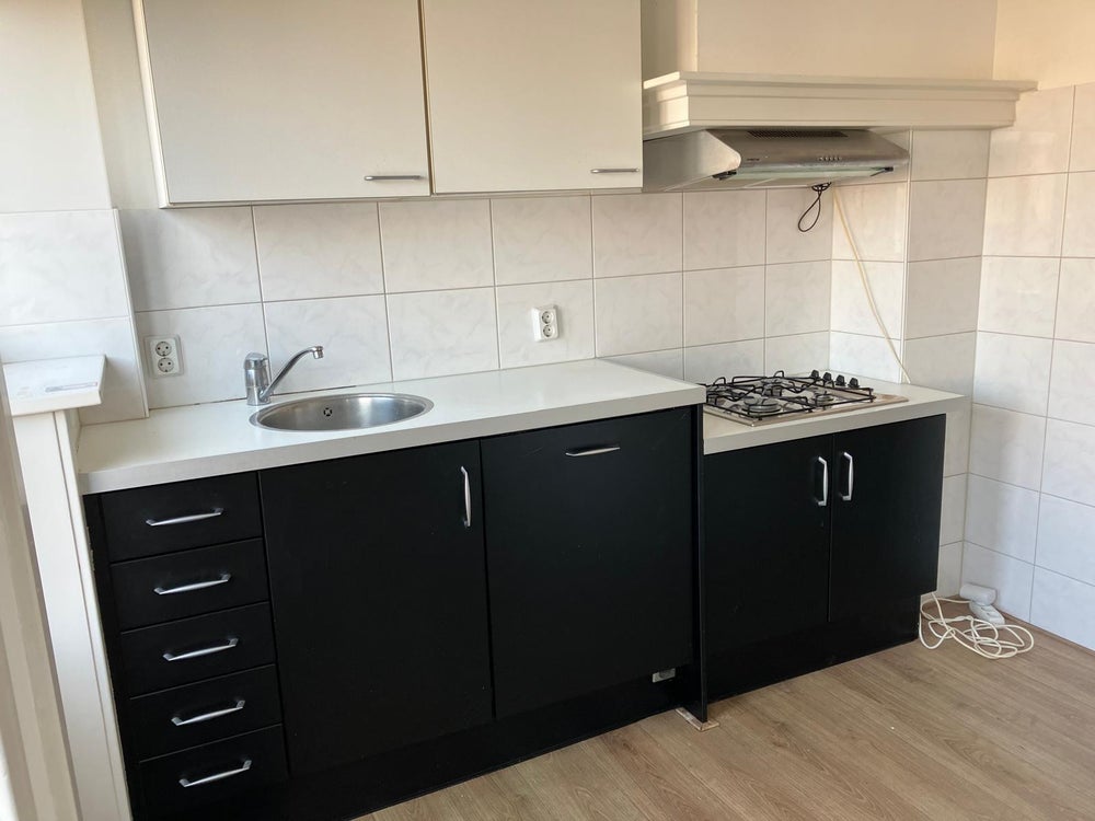 De keuken van 8m² is voorzien van moderne gemakken zoals een gaskookplaat, een afzuigkap en een enkele hendel kraan. Deze keuken is praktisch ingericht en werd recentelijk geïnstalleerd, wat zorgt voor een frisse en functionele kookomgeving.
